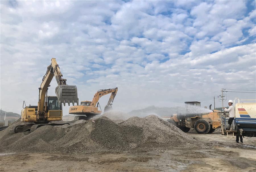 在柳州市洛維路西段北側(cè)規(guī)劃路網(wǎng)工程規(guī)劃一路(A0+000——A0+536.854)、規(guī)劃三路、規(guī)劃五路工程施工現(xiàn)場,挖掘機(jī)、沖孔樁樁機(jī)、起重機(jī)正開足馬力運(yùn)行,工人們在鋼筋加工棚內(nèi)有序地捆扎鋼筋,放眼過去是一片熱火朝天的景象。針對因沖孔樁線處于沖溝地帶,地質(zhì)情況復(fù)雜,沖孔過程不斷出現(xiàn)漏漿、偏孔現(xiàn)象的問題,現(xiàn)場技術(shù)管理人員帶班作業(yè),全程監(jiān)控澆注過程,確保全線沖孔灌注樁澆筑安全有序進(jìn)行。