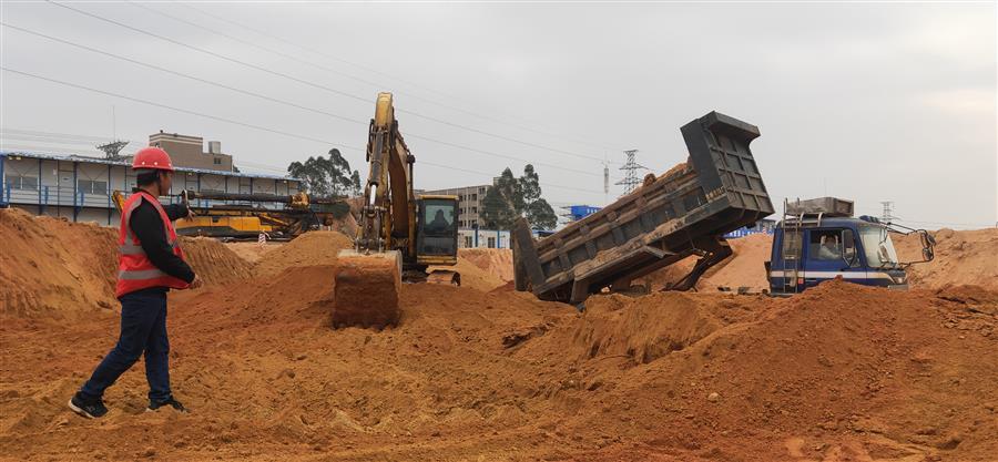 項目部現(xiàn)在已吹響“決戰(zhàn)三十天,沖刺總目標(biāo)”的號角,各項搶工工作正全面鋪開。目前,安全文明臨時設(shè)施已基本施工完畢,現(xiàn)場正緊鑼密鼓地進行主體處障礙山體移除及基坑開挖等工作。