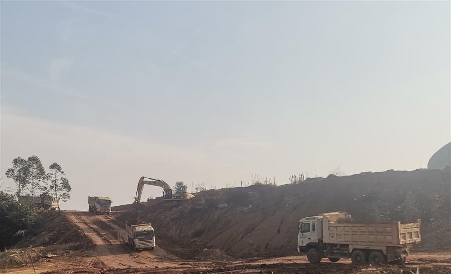 生活垃圾焚燒處理項(xiàng)目項(xiàng)目管理人員在放線測量