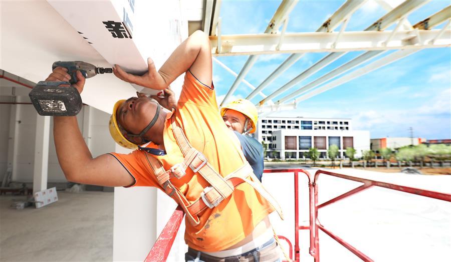炎炎夏日,擋不住項(xiàng)目推進(jìn)的步伐。7月20日,由冶建公司承建的柳州鐵路港核心區(qū)(西鵝鐵路物流中心)倉(cāng)儲(chǔ)配一體庫(kù)項(xiàng)目施工現(xiàn)場(chǎng),皮膚黝黑的覃五偉在工友的配合下,迅速而準(zhǔn)確地把一塊塊外立面板材安裝到位,與此同時(shí)在該項(xiàng)目現(xiàn)場(chǎng)、不同作業(yè)崗位上的,還有幾十名工人,正在揮汗如雨地工作,大家克服困難、齊心協(xié)力施工,就是為了盡快完成項(xiàng)目的收尾工作,早日交付。