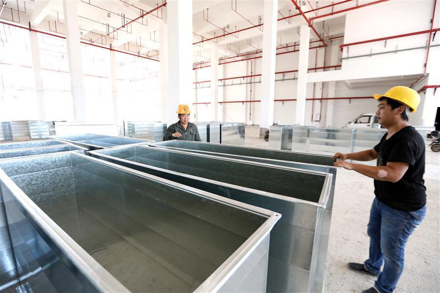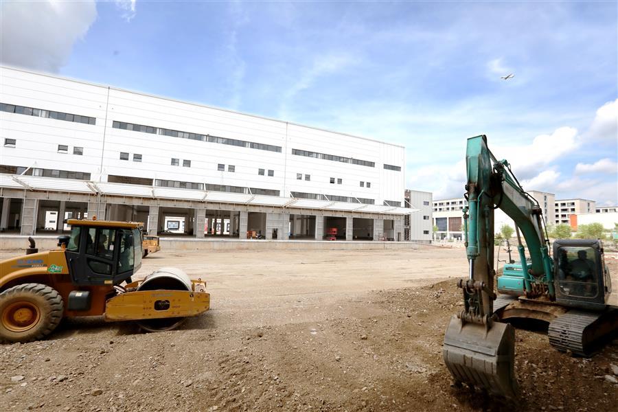 該項(xiàng)目負(fù)責(zé)人莫?jiǎng)ι榻B,倉(cāng)儲(chǔ)配一體庫(kù)主要建設(shè)6棟庫(kù)房,目前項(xiàng)目主體基本建成,正緊張有序收尾。為了加快項(xiàng)目進(jìn)度,項(xiàng)目部在做好防暑降溫、安全施工等保障措施的同時(shí),采取多班組、多工種在不同的庫(kù)房交叉作業(yè),目前工地上有七八個(gè)班組在施工,施工內(nèi)容包括外立面、擋雨棚、通風(fēng)管、地面硬化施工等。