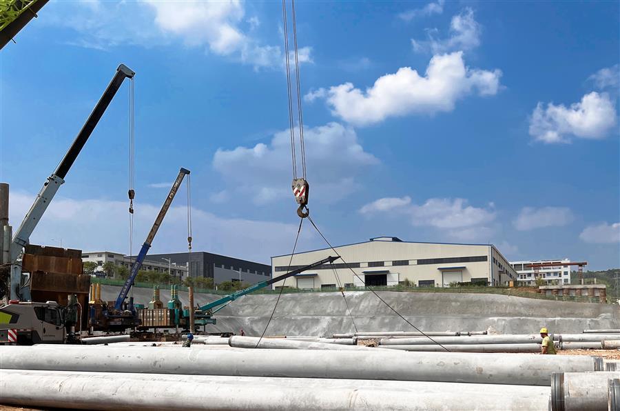 截至目前,項(xiàng)目已完成土方開挖量4萬立方米,完成基坑安全防護(hù)、試樁靜載試驗(yàn)以及項(xiàng)目東側(cè)人員通道水溝回填等工作,完成產(chǎn)值近5000萬元。