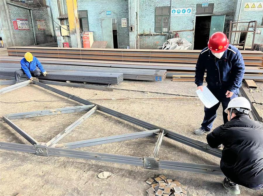 廣西柳鋼環(huán)保公司鋼渣廠1#廠房氣窗及3-11#柱屋面鋼結構與彩瓦更換工程鋼結構預制加工現(xiàn)場,焊接“火花”不斷,工人作業(yè)有序。據(jù)了解該項目屬于檢修項目,工期緊,需提前加工預制完后,才能拆除現(xiàn)場舊屋架,現(xiàn)場生產(chǎn)環(huán)境高溫腐蝕嚴重,為了確保項目施工安全,施工班組每天進場前都要進行安全交底。當前,該項目完成5片屋架組隊,2跨天窗主體鋼框架,所有構件制作完成,整體已完成年前計劃進度約85%,加工過程中甲方隨機抽檢均合格。