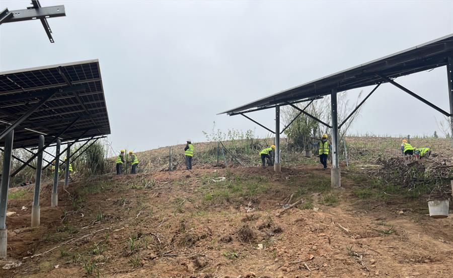 項(xiàng)目規(guī)劃總占地面積1509.9畝,建設(shè)規(guī)模為50MW,該項(xiàng)目的建成將有效助力當(dāng)?shù)禺a(chǎn)業(yè)結(jié)構(gòu)優(yōu)化、節(jié)能減排,促進(jìn)綠色可持續(xù)發(fā)展。項(xiàng)目已實(shí)現(xiàn)節(jié)點(diǎn)并網(wǎng),現(xiàn)階段主要圍繞電纜敷設(shè)、溝槽開(kāi)挖、接地網(wǎng)敷設(shè)、圍欄安裝開(kāi)展工作。當(dāng)前,項(xiàng)目支架安裝完成66.32%,組件安裝完成66.32%,累計(jì)完成產(chǎn)值2270萬(wàn)元。