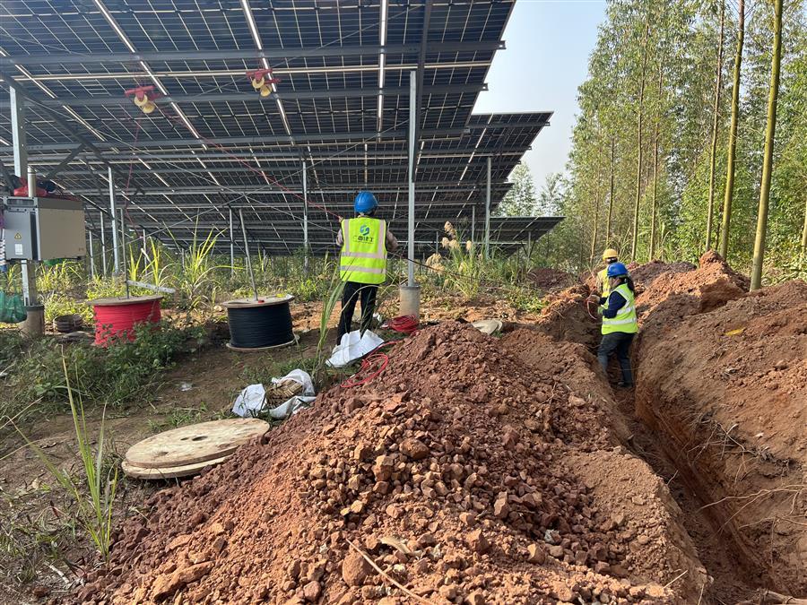 節(jié)后復(fù)工復(fù)產(chǎn)以來(lái),項(xiàng)目接地網(wǎng)開(kāi)挖敷設(shè)完成1235米,低壓電纜敷設(shè)完成1285米,光伏專(zhuān)用電纜敷設(shè)完成14760米,圍欄安裝1030米。