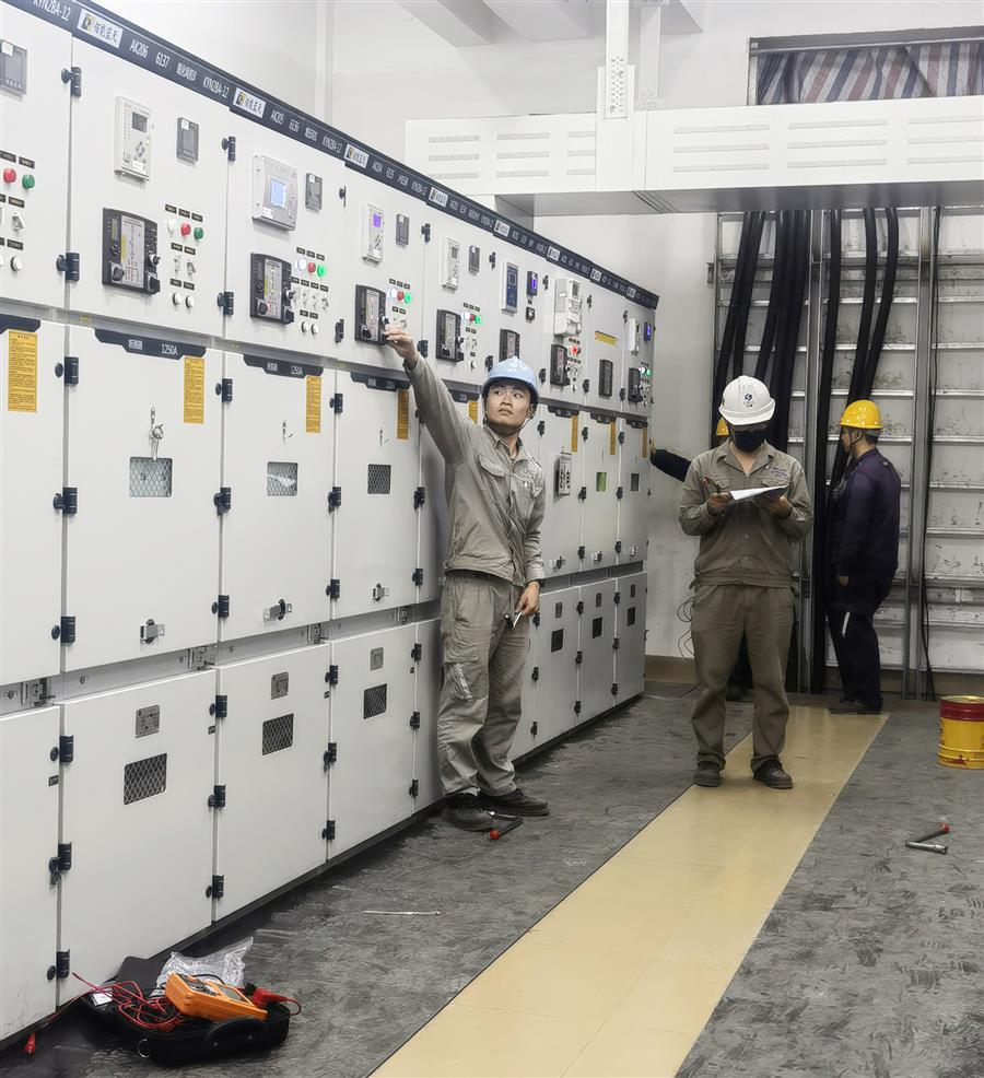 為確保按時(shí)順利送電,項(xiàng)目部多次組織技術(shù)人員對(duì)電氣樓進(jìn)行檢查確認(rèn),特別是對(duì)高低壓柜、隔離開關(guān)等設(shè)備的功能、絕緣進(jìn)行了多次檢查和測試,為保證整個(gè)送電過程安全順利進(jìn)行創(chuàng)造了有利條件。