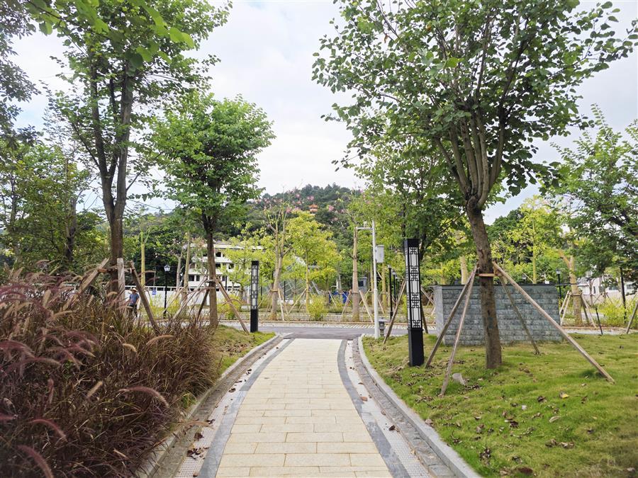 項目總建筑面積約2.7萬平方米,為一座兩層局部覆土式地上停車庫,建設內(nèi)容包含停車場、地面廣場鋪裝及綠化、給排水、電氣、消防等附屬工程。項目建成將新增600個機動車位,其中負二層510個機動車位,負一層78個有充電樁的新能源停車位,屋面12個無障礙車位;另外,停車庫屋面設有283個非機動車位。綠地率為60%。停車場內(nèi)部空間寬敞明亮,外觀看像是地下停車庫,但實際上由于該區(qū)域地勢較低,為合理規(guī)劃,特意將停車庫設計為地上兩層局部覆土式停車庫,即在停車庫上方回填泥土,在泥土上種植綠化樹木,將車庫上方裝點成一個小公園。項目交付運營,有效緩解三門江森林公園周邊“停車難”問題。