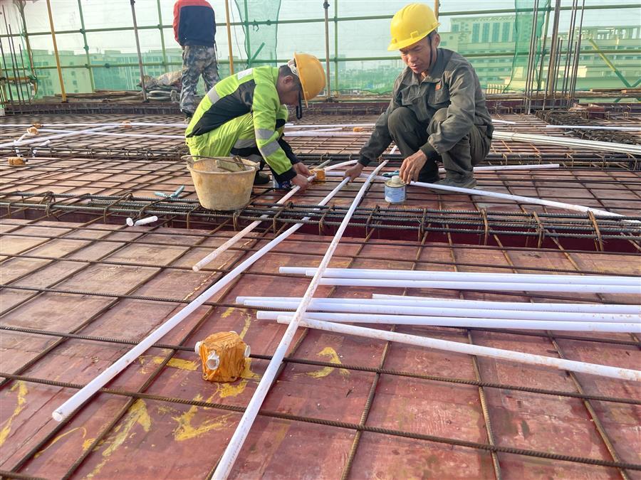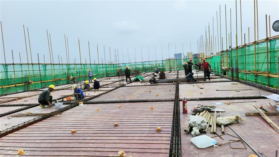 中秋將至,天氣依然炎熱。冶建公司桂海分公司承建的中國移動廣西分公司南寧武鳴區(qū)分公司生產(chǎn)調(diào)度用房工程項目施工現(xiàn)場一派熱火朝天的景象,建設者們各司其職,切割鋼筋、搬運材料、綁扎樓面鋼筋等,全力沖刺工程建設節(jié)點。