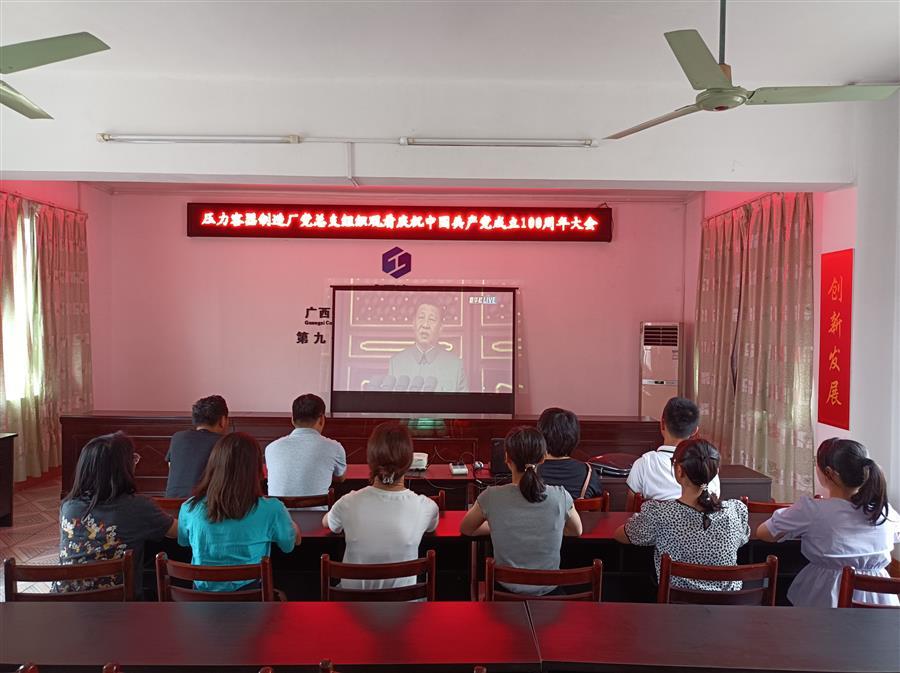公司黨委組織員工收看慶祝中國共產(chǎn)黨成立100周年大會直播。公司領(lǐng)導班子成員覃振華、蒙勝益、賴海標、廖立波、唐峰、阮仁勝、周善學、何勇,代財務總監(jiān)李芝霞,副調(diào)研員劉國江以及各基層黨組織黨員以集中或個人收看方式觀看大會直播。