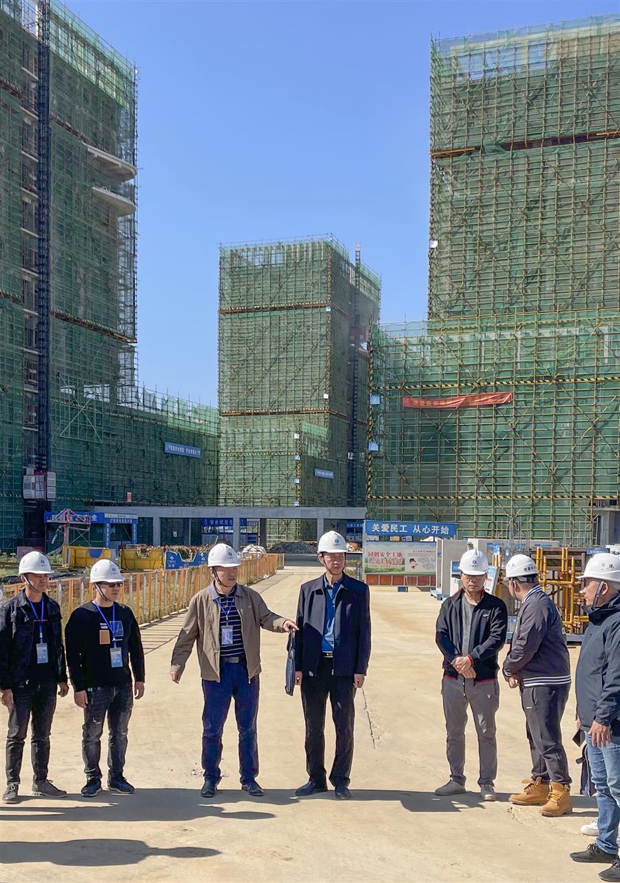 何勇深入項(xiàng)目施工現(xiàn)場(chǎng),詳細(xì)了解項(xiàng)目安全質(zhì)量、建設(shè)進(jìn)度等情況,并對(duì)模板、外架、臨時(shí)用電、樓層臨邊防護(hù)、農(nóng)民工工資發(fā)放、疫情防控等工作進(jìn)行了仔細(xì)檢查。
