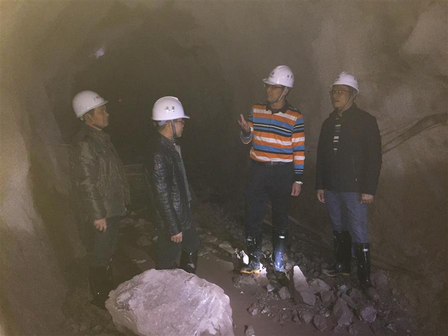 (歐總經理(右二)在隧洞掌子面了解相關情況)