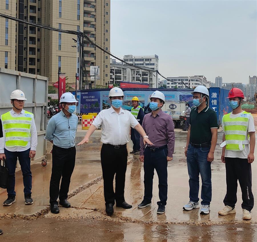 4月15日,冶建公司總經(jīng)理、黨委副書記蒙勝益到桂華分公司承建的南寧軌道交通5號線廣西大學(xué)站至廣西財經(jīng)學(xué)院(廣財區(qū)間)地下空間利用工程項(xiàng)目市政配套工程調(diào)研指導(dǎo)。