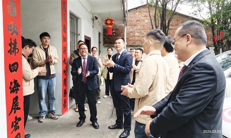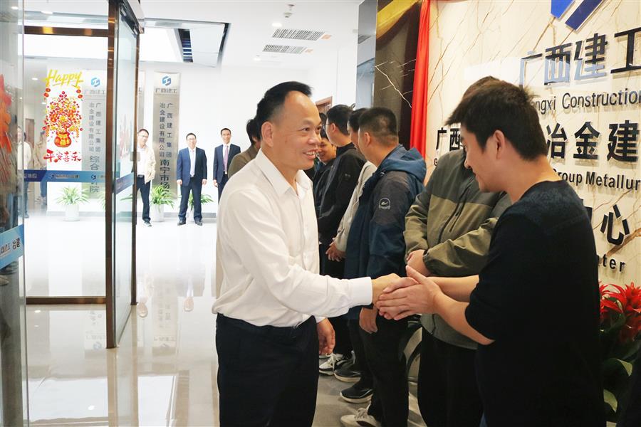 春風(fēng)拂面暖人心,奮楫揚(yáng)帆啟新程。3月2日是冶建公司春節(jié)假期后首個(gè)工作日,公司董事長(zhǎng)、黨委書(shū)記覃振華,總經(jīng)理、黨委副書(shū)記蒙勝益攜領(lǐng)導(dǎo)班子成員賴(lài)海標(biāo)、廖立波、阮仁勝、韋克雪、葉益華,通過(guò)實(shí)地走訪與視頻連線(xiàn)相結(jié)合的方式,向在崗干部職工致以新春?jiǎn)柡蚺c美好祝愿,為新一年各項(xiàng)工作開(kāi)好局、起好步注入澎湃動(dòng)力。