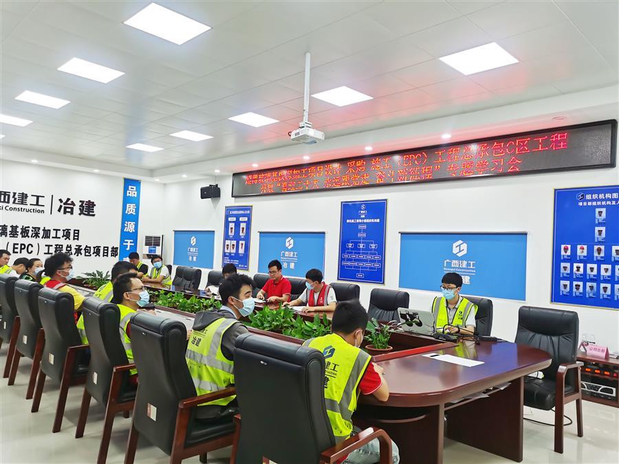 桂華分公司超薄玻璃項目開展“喜迎二十大 永遠跟黨走 奮斗新征程”專題學(xué)習(xí)會,學(xué)習(xí)理論知識,提升業(yè)務(wù)能力。
