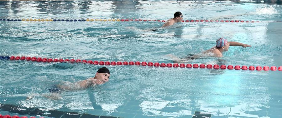 決賽環(huán)節(jié),運動員們紛紛向最后的勝利發(fā)起沖刺,泳道內(nèi)大家激情澎湃、斗志昂揚,泳池旁啦啦隊的加油助威聲此起彼伏,比賽的氣氛被推至高潮。